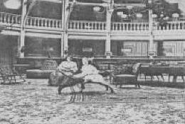 Many of the 50-plus rooms opened onto a mezzanine, and a great chandelier
